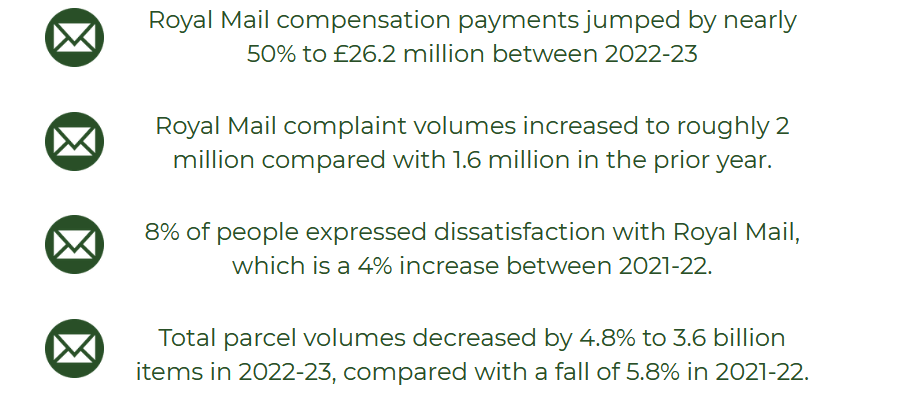According to Ofcom, following an audit of the Royal Mail, the number of complaints in 2017 rose by 3%.