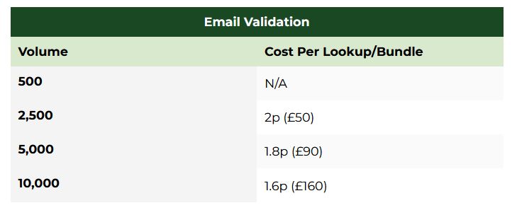- Pricing for Email Address Validation and an address cleanse start at 2p per lookup.