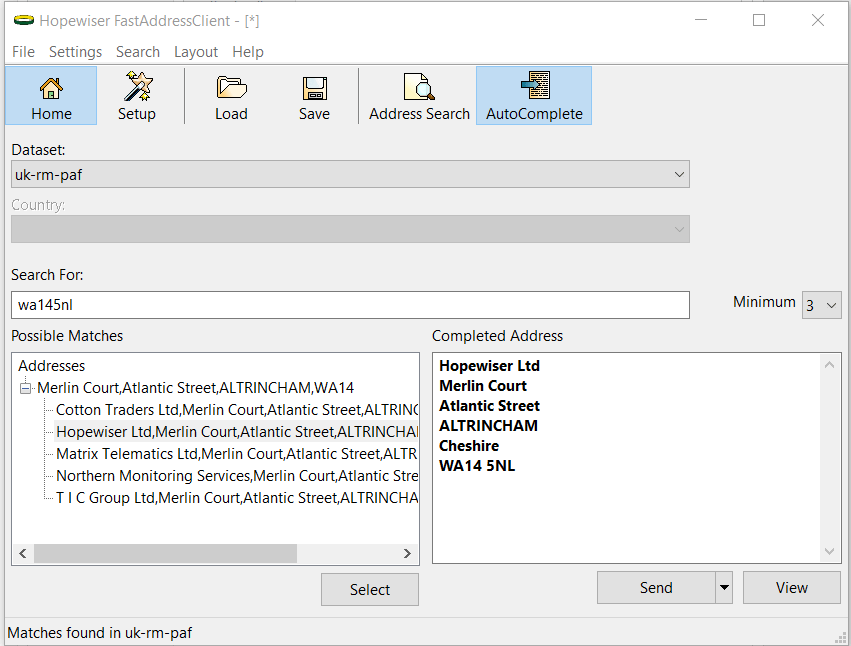 When you have matched an address click the Send button to send the address fields to the target application, in this case Notepad. The address fields will be sent to Notepad as seen in the image below.