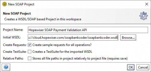 Start a new project from the menu or toolbar, give the project a name and enter the WSDL: