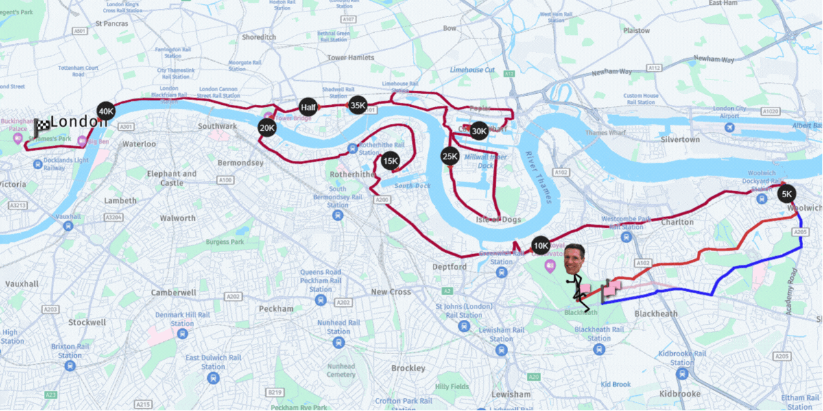 The route takes runners through a huge variety of London postcodes, from SE10 at the start to SW1 at the finish. Here’s a closer look at the journey.